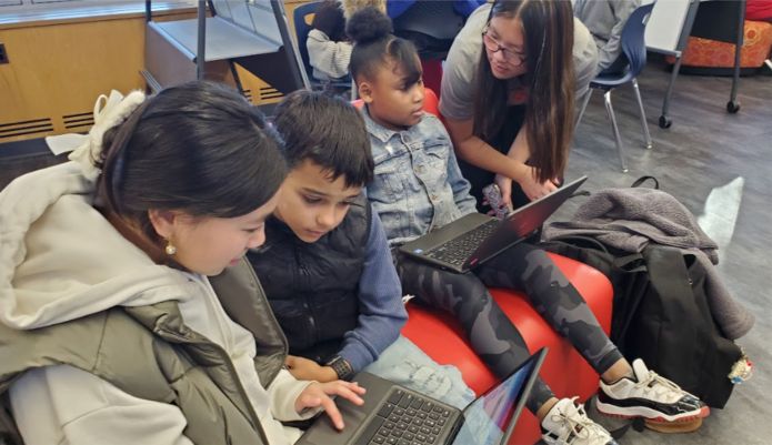 A large group of high school students from Newburgh Free Academy recently ventured down the street to Gidney Avenue Memorial School to work with their younger peers in exploring computer technology.