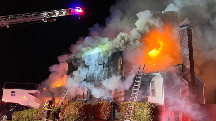 Volunteer firefighters from multiple departments converged on the scene of a two-alarm house fire near the Washingtonville and New Windsor border late last night.