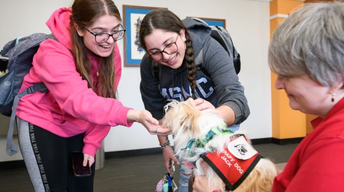For Mount Saint Mary College students taking their midterms this week, a group of therapy dogs provided a stress-busting break yesterday.